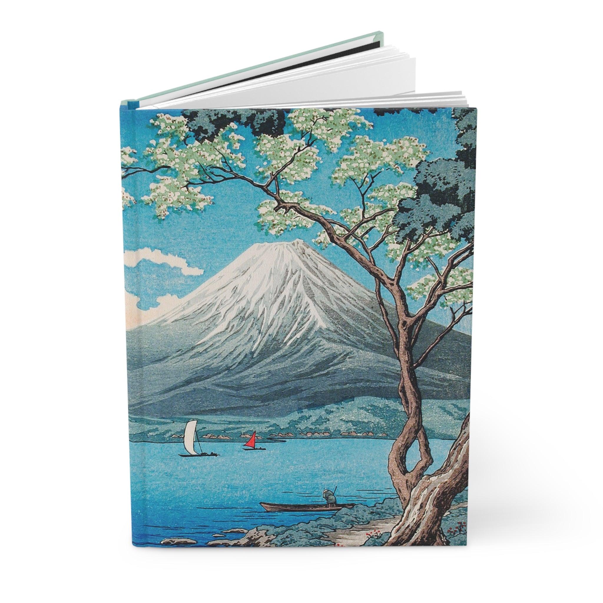 This hardcover journal carries a calm, contemplative atmosphere—soft teal gradients and a classic woodblock-style Mount Fuji scene invite quiet reflection. The matte cover reduces glare while the sewn casewrap binding lets the book open flat and follow you through long writing sessions. Inside, 150 lined pages with perforations give structure and freedom: keep the pages you want, tear away the rest. Use it as a daily planner, a travel log, or a place to sketch the small, steady moments that shape your goals. The design and French-accented copy on the back suggest thoughtful pauses and forward motion—clear mind, clear direction.